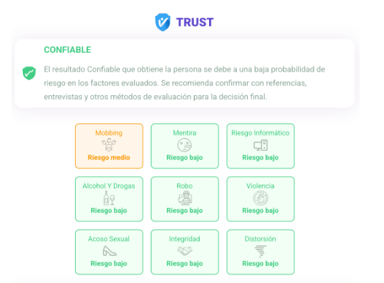 ✅ Integración con otros módulos: Combina los resultados de TRUST con otras evaluaciones para una visión completa del candidato.