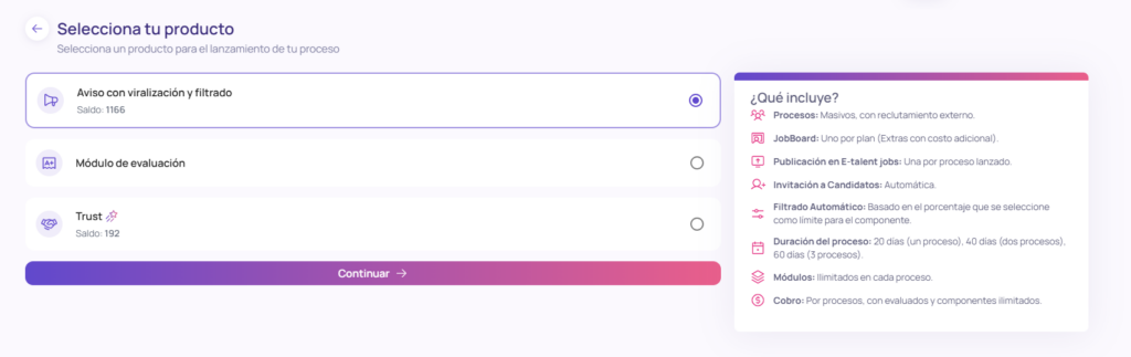 Configurar correctamente la selección del producto asegura que como empresa cuentes con una estrategia de evaluación alineada a tus necesidades, optimizando la contratación del mejor talento.