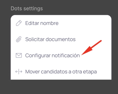 - Las notificaciones se podrán configurar en cualquier etapa excepto en Finalizados y preseleccionados