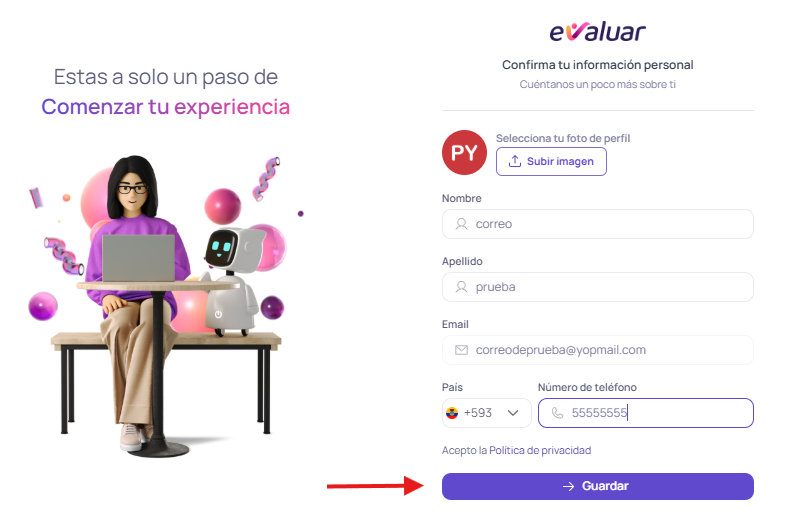 • Crear cuenta en evaluar.com (Registro con correo)